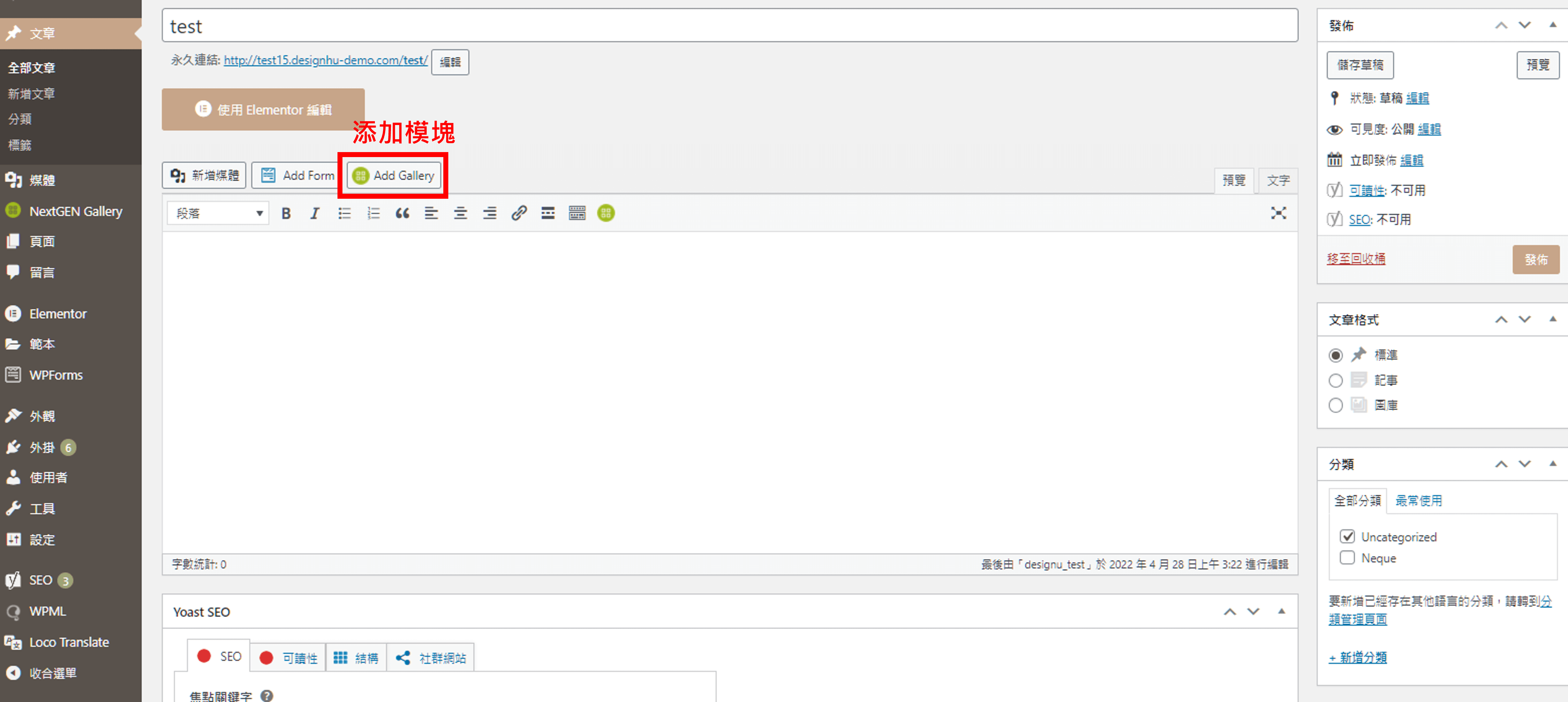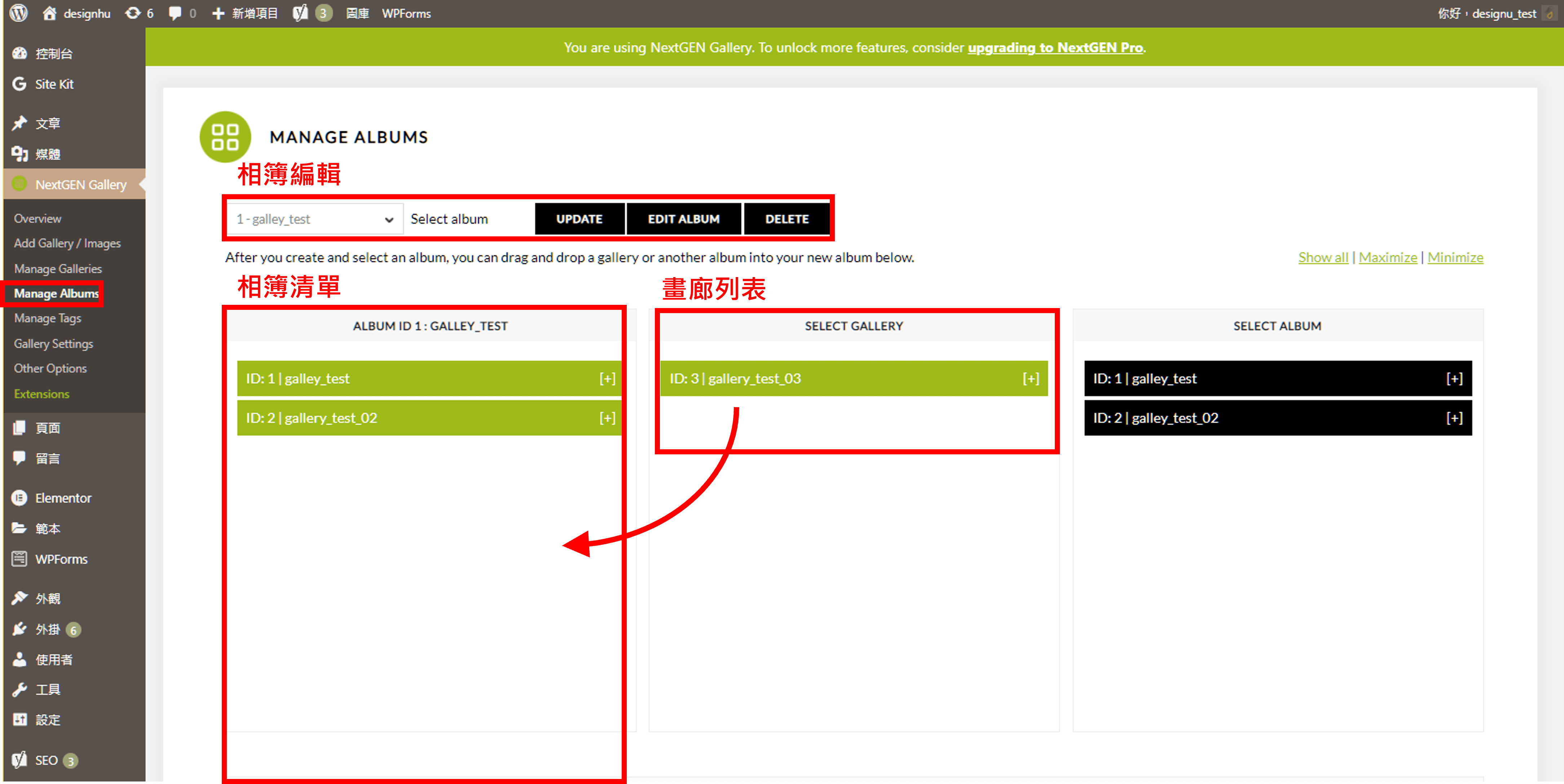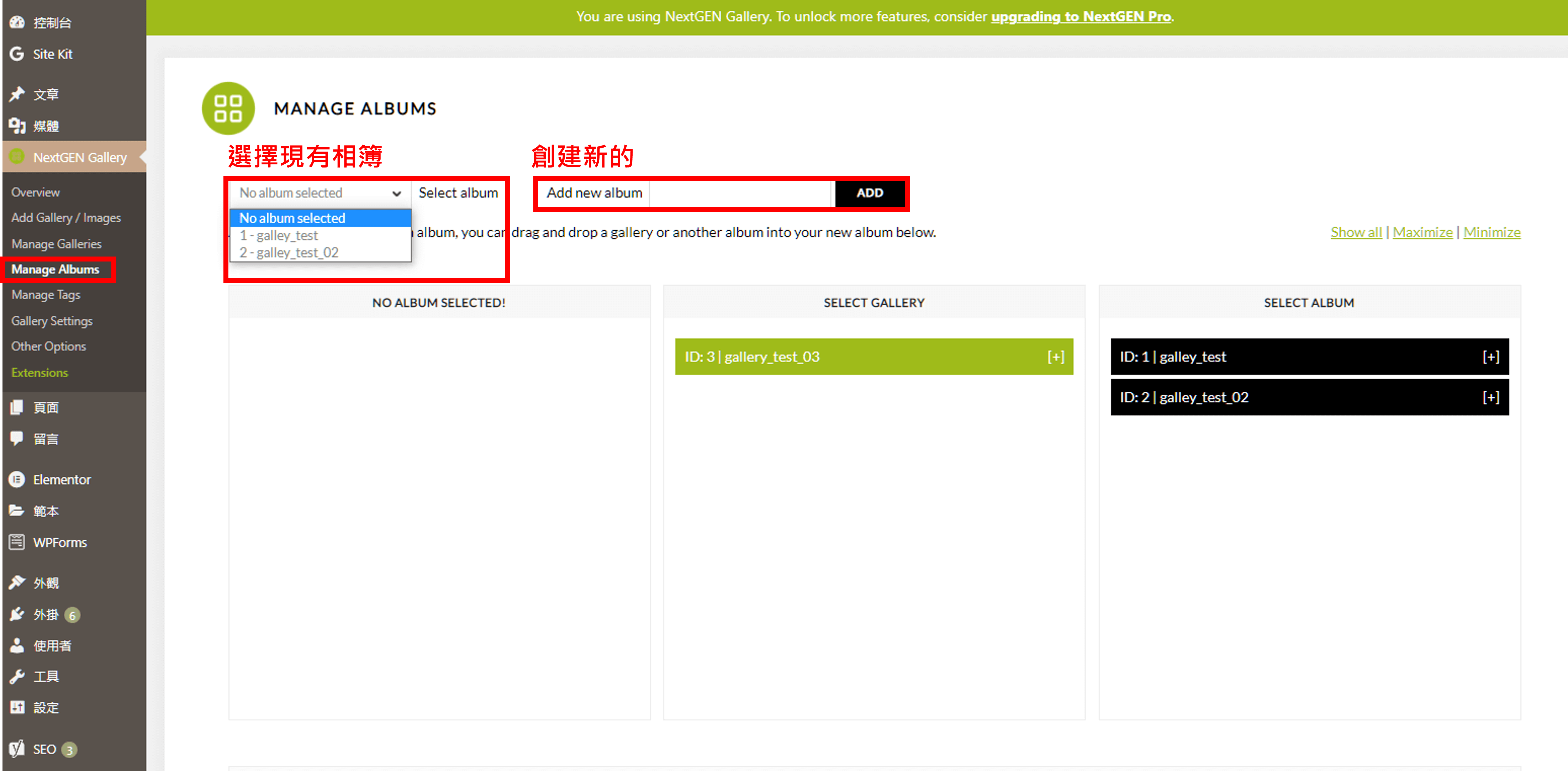 啟用后,我們將在網(wǎng)頁左側(cè)多出「NextGen Gallery」欄位。