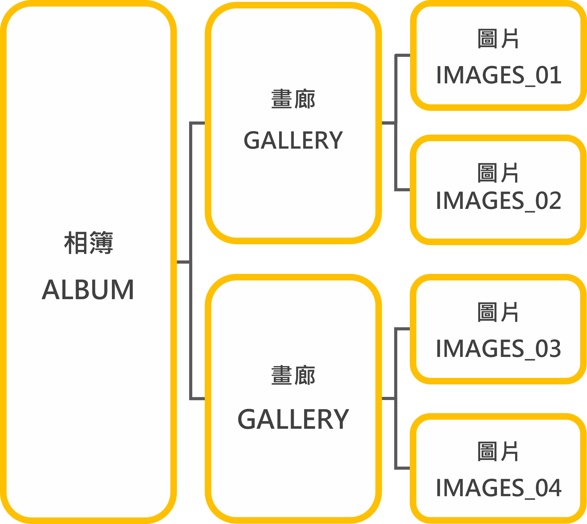 相冊(cè)結(jié)構(gòu)由三者組成的關(guān)系圖如下: