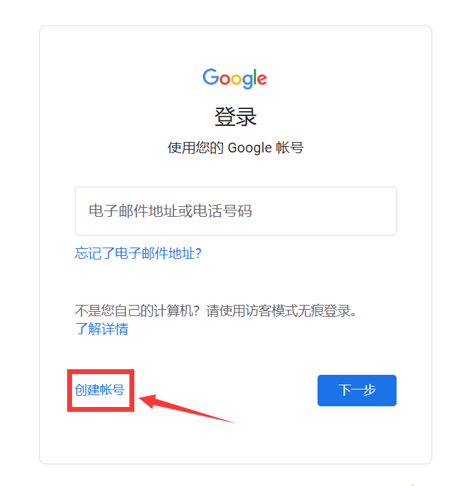 進(jìn)入谷歌賬號(hào)注冊(cè)網(wǎng)頁