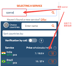 如果沒有手機號碼,打開北美驗證碼接碼背景,搜索openai,點擊取號